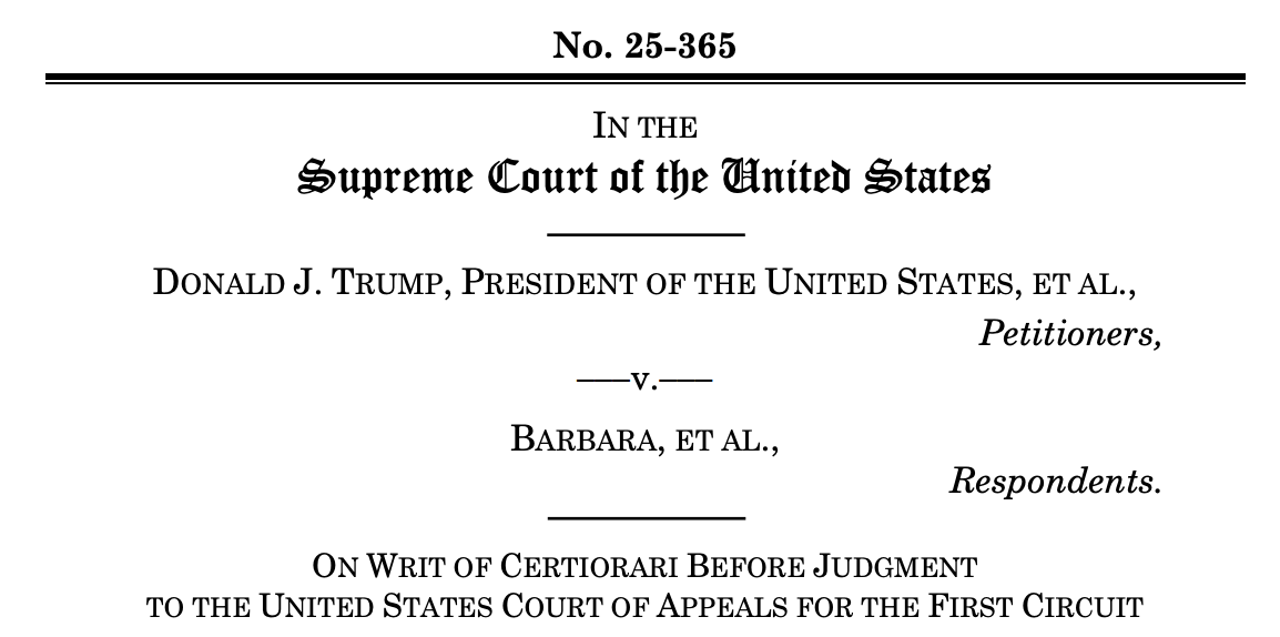 To abide by a promise made to the Supreme Court, the Solicitor General asked the Court to review the matter on the merits and finally decide the lawfulness of EO 14160. The Court agreed. It set oral argument for April 1, 2026, with a ruling expected by the end of June.